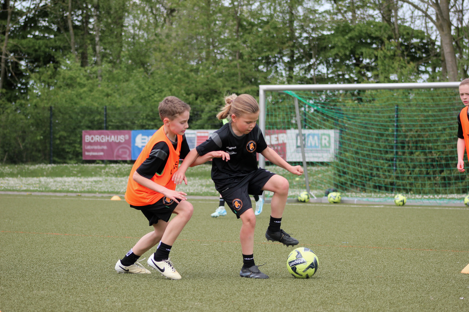 Unser FörderTraining ergänzt den Vereinsfußball und richtet sich an alle Kinder – unabhängig vom aktuellen Leistungsstand. In kleinen Gruppen und mit qualifizierter Betreuung fördern wir gezielt Technik, Spielfähigkeit und Spielverständnis. Unsere Trainerinnen und Trainer nehmen sich Zeit, um auf individuelle Stärken einzugehen und Potenziale bestmöglich zu entwickeln.